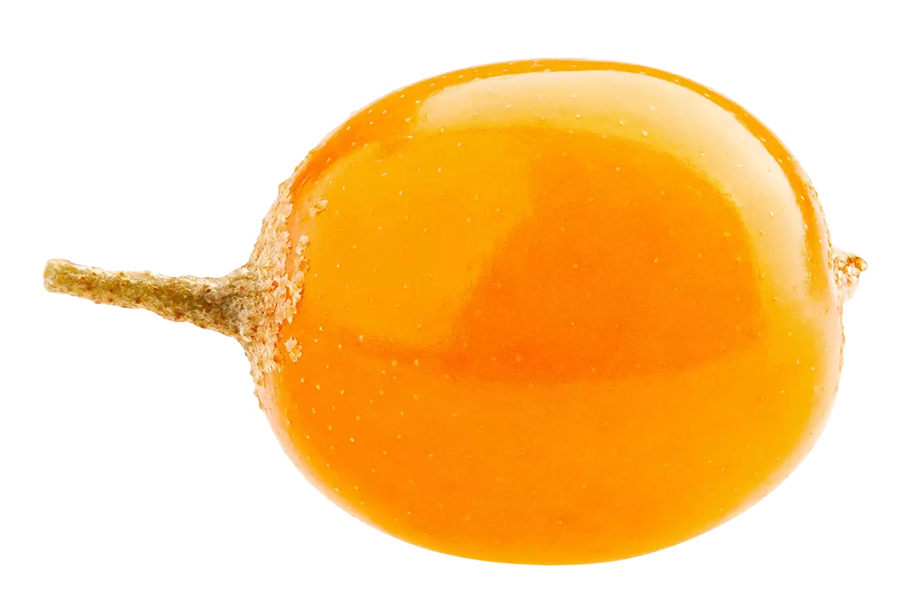 小果沙棘是一种适应力强大,常见于高海拔环境的沙棘品种。其果实圆润且多为金黄色,并拥有高含量的维生素 C 与类黄酮,因此风味也较为酸涩,主要应用在传统药方或营养保健领域,并具有悠久的药用历史与记载。