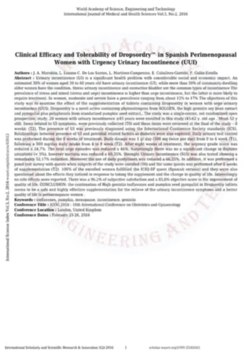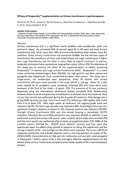 Dropsordry® 是一款专为产后与更年期妇女所设计的止漏配方,由西班牙保健原料大厂 Tradichem 所研制。复合南瓜子与大豆萃取物,并经多年调配与功效验证,最终找到效率最佳的 8:2 黄金比例。其富含金雀异黄酮与木酚素,透过双重锁定技术,并具有临床实证支持,受试者满意高达 96% 以上。